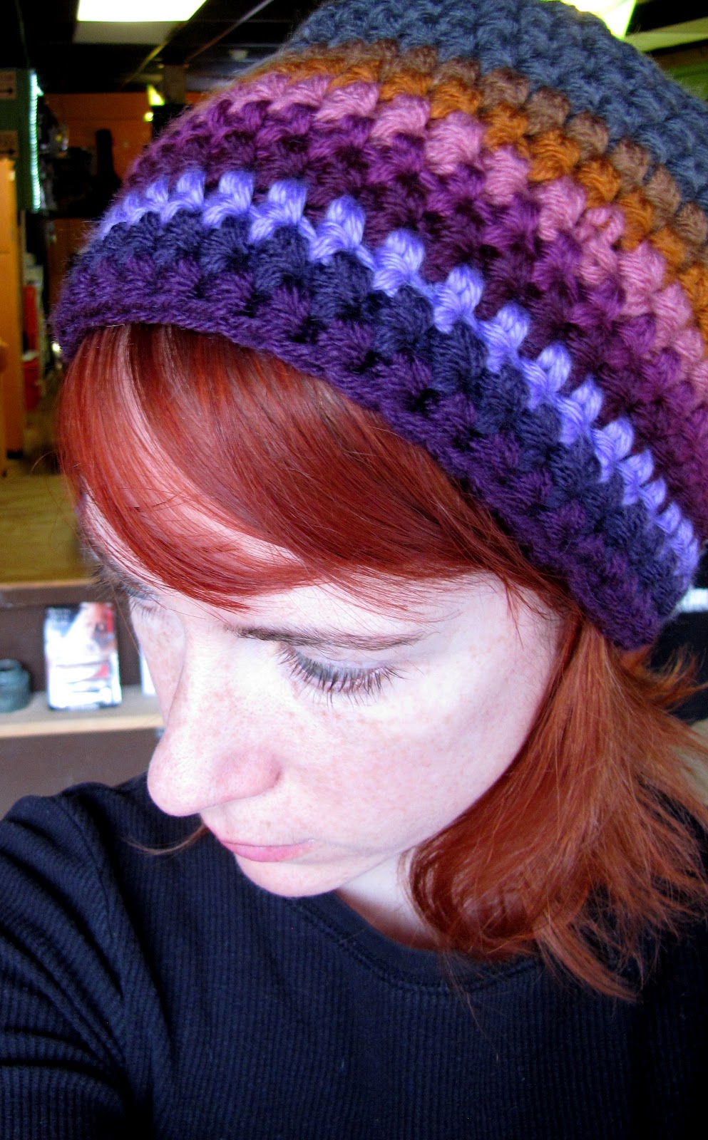 The upside of being married to me is all the handmade hats you could ever want. The downside is having hats constantly yanked on your head, a camera flashing away in your face, and someone yelling at you to "work it." That's my indirect way of thanking my husband for modeling these hats.